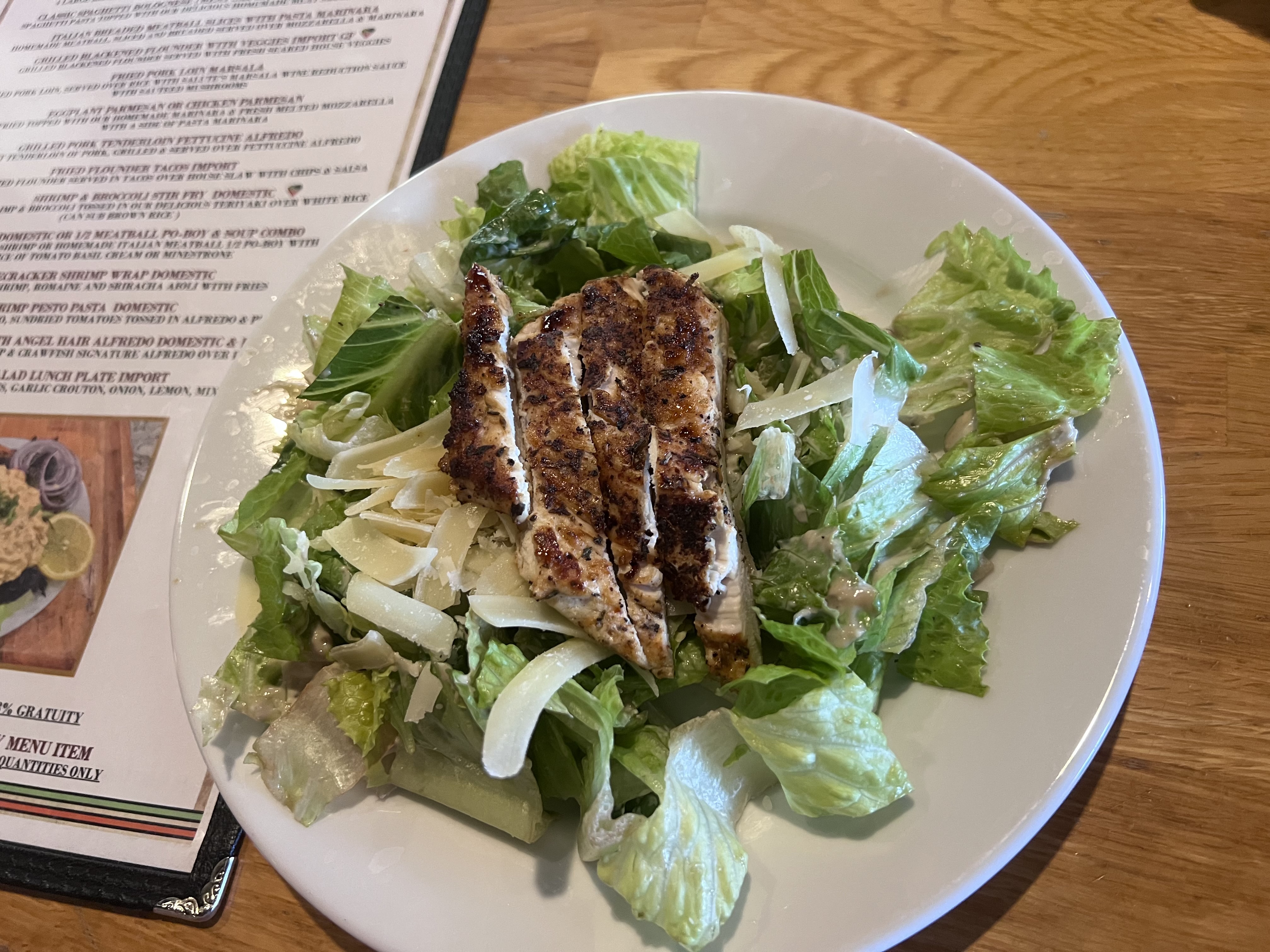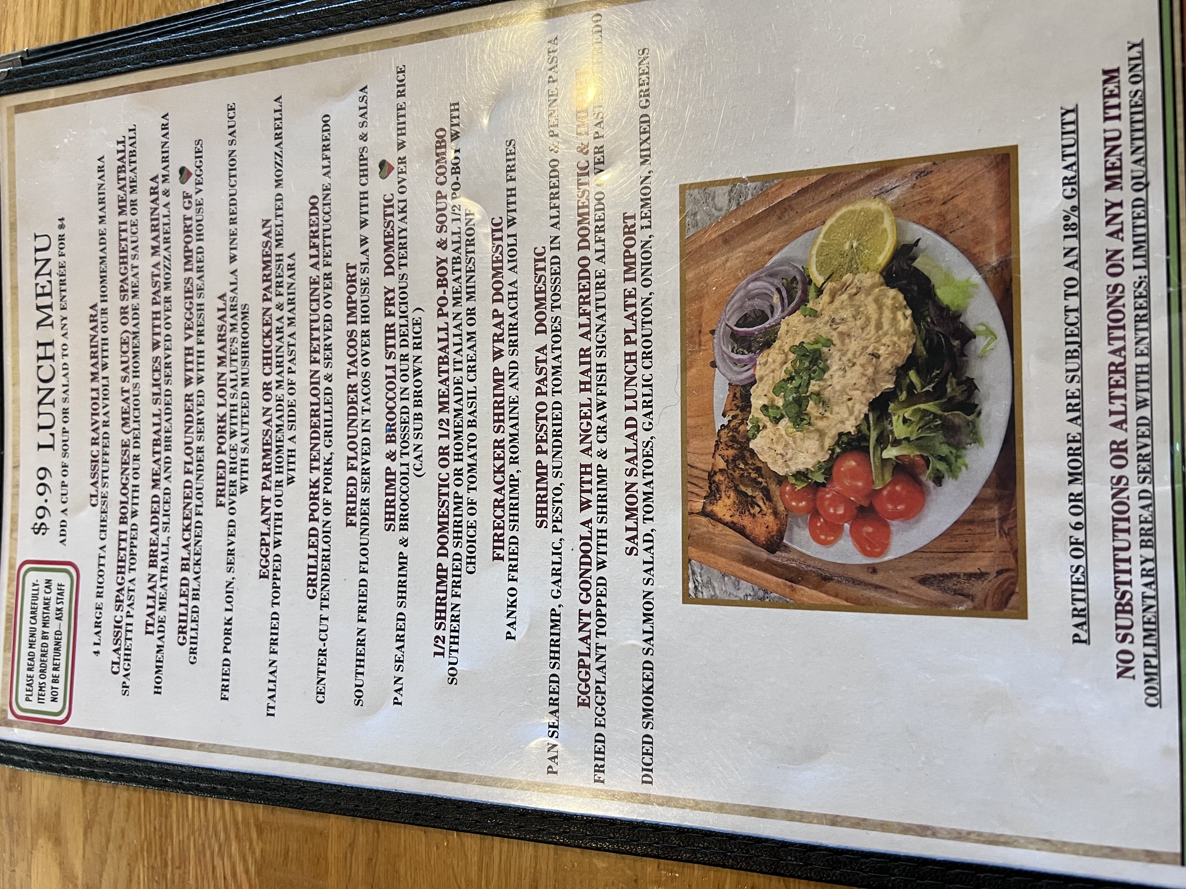 This week I got to visit Salutes Seafood and Italian Restaurant by the beach! This is a place I don’t go to as often as restaurants closer to my house, but it is still an amazing restaurant nonetheless. The staff has always been super friendly and attentive every time I’ve visited. The food is absolutely amazing too. I got the Grilled Pork Tenderloin Fettuccine Alfredo and my mom got Chicken Caesar Salad. Both are amazing. You will also receive a basket of bread and pesto to snack on while you wait for your meal. I definitely recommend checking out this restaurant if you ever visit the Mississippi Gulf Coast.