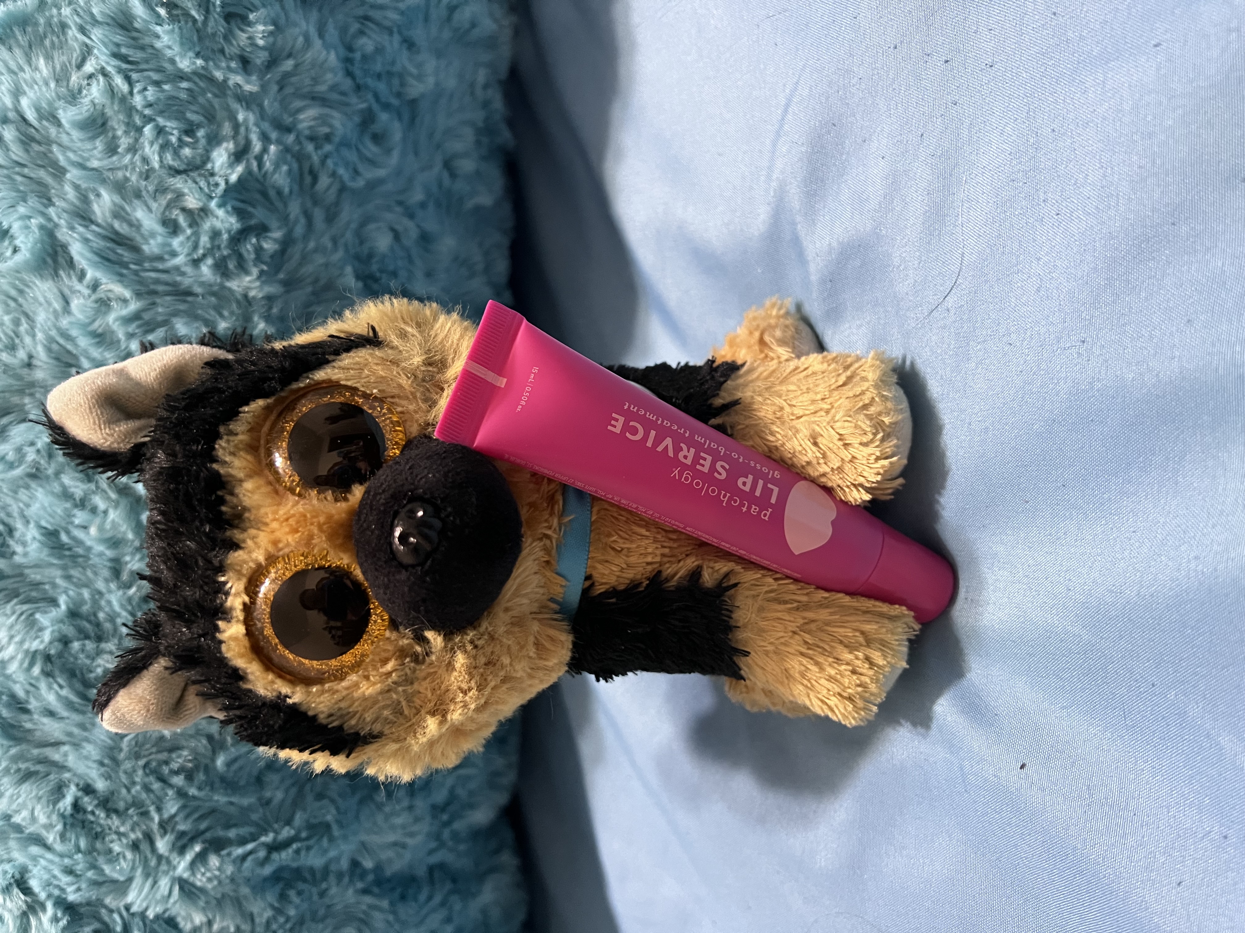 Lastly, on this week’s product episode we talked about a new lip gloss that turns into a lip bomb. It smells and tastes like a Christmas candy cane! It is called Patchology Lip Service: gloss- to-balm lip treatment. My mom loves it and it makes her lips super soft. So I definitely recommend it so us furries can get soft kisses!